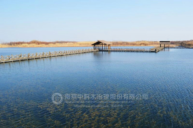 溱湖國(guó)家濕地公園內(nèi)的溱湖風(fēng)景區(qū)是國(guó)家5A級(jí)旅游景區(qū)和經(jīng)江蘇省人民政府批準(zhǔn)的省級(jí)風(fēng)景名勝區(qū),是由國(guó)家林業(yè)局批準(zhǔn)設(shè)立的全國(guó)第二家、江蘇省首家國(guó)家級(jí)濕地公園。溱湖生態(tài)構(gòu)建示范區(qū)水面面積約8萬㎡,平均水深1.5m,生態(tài)構(gòu)建之前水體透明度僅為25cm。我司通過人工干預(yù),打破水體濁水穩(wěn)定態(tài),水生植被覆蓋率70%左右,水體平均透明度達(dá)到1.5m,清澈見底,形成穩(wěn)定的良性生態(tài)系統(tǒng)??⒐ぶ两?,生態(tài)系統(tǒng)一直保持穩(wěn)定,水質(zhì)指標(biāo)達(dá)到《地表水環(huán)境質(zhì)量標(biāo)準(zhǔn)》(GB3838-2002)Ⅰ類水標(biāo)準(zhǔn)。