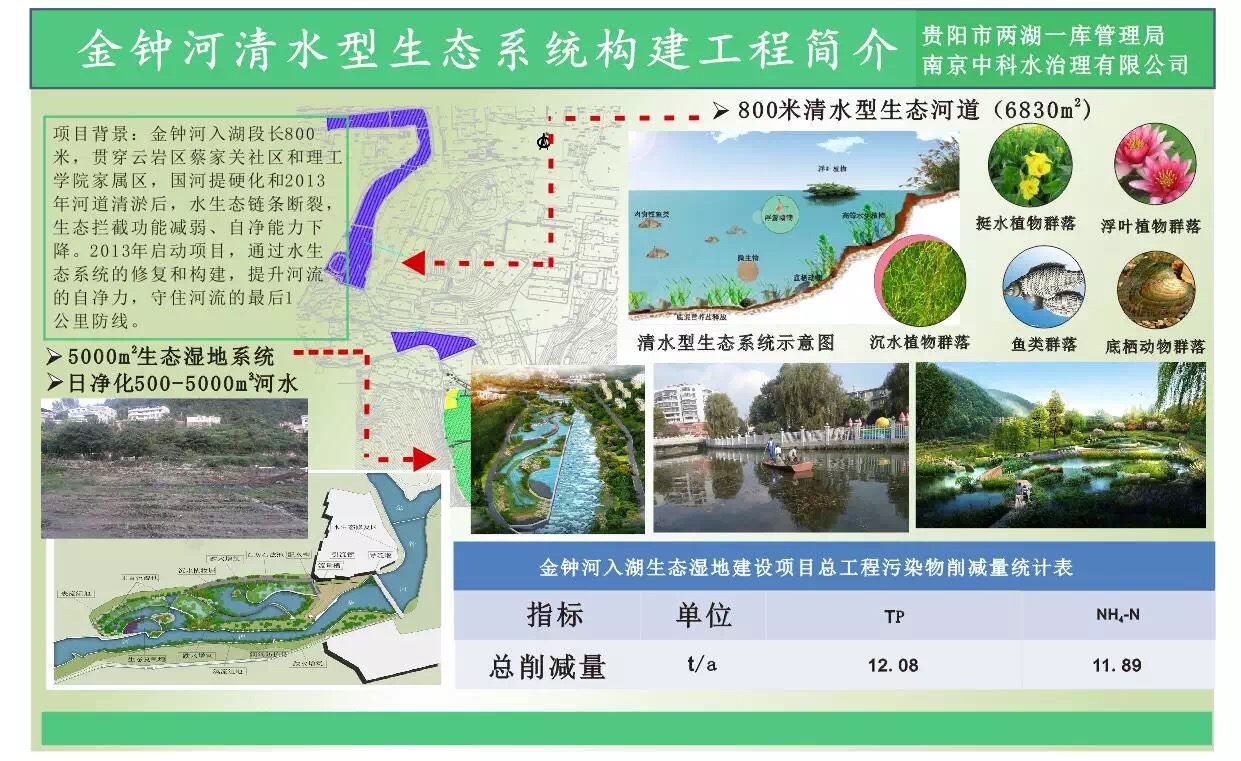 隨著經(jīng)濟(jì)社會的快速發(fā)展、城市人口的迅速增長,城市污水處理設(shè)施、收集管網(wǎng)建設(shè)嚴(yán)重滯后,黑臭河道問題長時(shí)間無法解決。今年年初,貴州省政府印發(fā)《貴州省水污染防治行動(dòng)計(jì)劃工作方案》:明確到2017年,貴陽市建成區(qū)基本消除黑臭水體。在此背景下,貴陽市兩湖一庫管理局對阿哈水庫流域進(jìn)行綜合整治。阿哈水庫金鐘河入湖段生態(tài)治理項(xiàng)目是阿哈水庫流域進(jìn)行綜合整治的項(xiàng)目之一,為防治環(huán)境污染,充分發(fā)揮和強(qiáng)化河流自身的凈化能力,同時(shí)兼顧景觀設(shè)計(jì),采用我公司清水型生態(tài)系統(tǒng)構(gòu)建技術(shù)對金鐘河流域水體污染進(jìn)行防治。